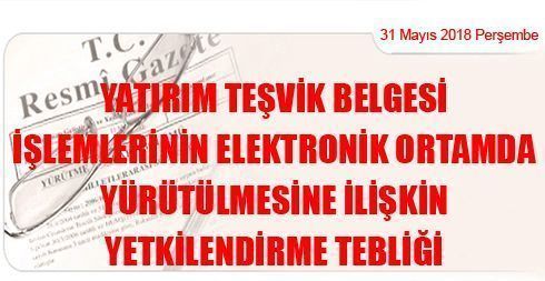 Yatırım Teşvik Belgesi İşlemlerinin Elektronik Ortamda Yürütülmesine İlişkin Yetkilendirme Tebliği