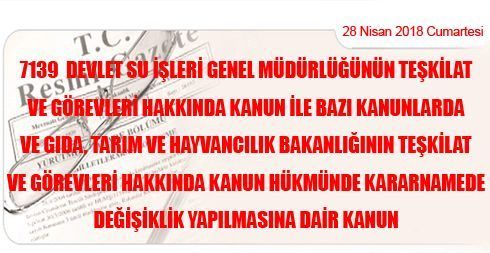 7139 Devlet Su İşleri Genel Müdürlüğünün Teşkilat ve Görevleri Hakkında Kanun ile Bazı Kanunlarda ve Gıda, Tarım ve Hayvancılık Bakanlığının Teşkilat ve Görevleri Hakkında Kanun Hükmünde Kararnamede Değişiklik Yapılmasına Dair Kanun