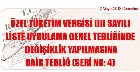 Özel Tüketim Vergisi (II) Sayılı Liste Uygulama Genel Tebliğinde Değişiklik Yapılmasına Dair Tebliğ (Seri No: 4)
