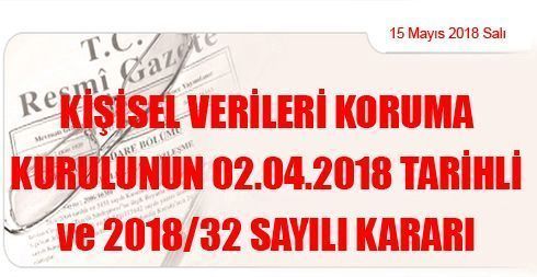 Kişisel Verileri Koruma Kurulunun 02/04/2018 Tarihli ve 2018/32 Sayılı Kararı