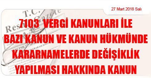 7103 Vergi Kanunları ile Bazı Kanun ve Kanun Hükmünde Kararnamelerde Değişiklik Yapılması Hakkında Kanun