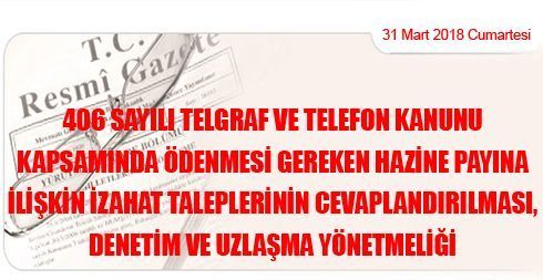 406 Sayılı Telgraf ve Telefon Kanunu Kapsamında Ödenmesi Gereken Hazine Payına İlişkin İzahat Taleplerinin Cevaplandırılması, Denetim ve Uzlaşma Yönetmeliği