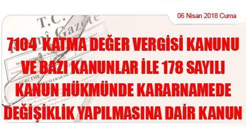 7104 Katma Değer Vergisi Kanunu ve Bazı Kanunlar ile 178 Sayılı Kanun Hükmünde Kararnamede Değişiklik Yapılmasına Dair Kanun