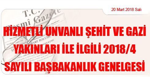 Hizmetli Unvanlı Şehit ve Gazi Yakınları ile İlgili 2018/4 Sayılı Başbakanlık Genelgesi