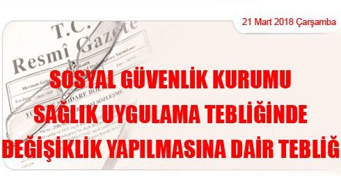 Sosyal Güvenlik Kurumu Sağlık Uygulama Tebliğinde Değişiklik Yapılmasına Dair Tebliğ