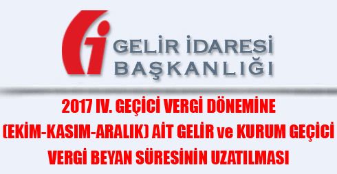 2017 IV. Geçici Vergi Dönemine (Ekim-Kasım-Aralık) Ait Gelir ve Kurum Geçici Vergi Beyan Süresinin Uzatılması