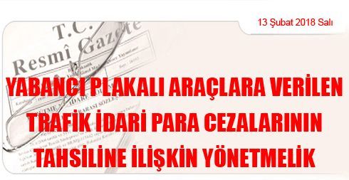Yabancı Plakalı Araçlara Verilen Trafik İdari Para Cezalarının Tahsiline İlişkin Yönetmelik