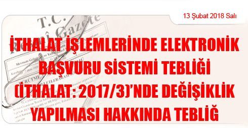 İthalat İşlemlerinde Elektronik Başvuru Sistemi Tebliği (İthalat: 2017/3)’nde Değişiklik Yapılması Hakkında Tebliğ
