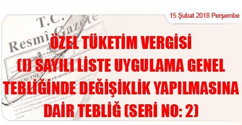 Özel Tüketim Vergisi (I) Sayılı Liste Uygulama Genel Tebliğinde Değişiklik Yapılmasına Dair Tebliğ (Seri No: 2)