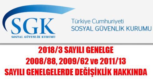 2018/3 Sayılı Genelge 2008-88, 2009-62 ve 2011-13 Sayılı Genelgelerde Değişiklik Hakkında