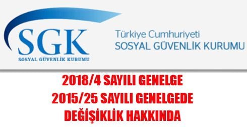 2018/4 Sayılı Genelge 2015/25 Sayılı Genelgede Değişiklik Hakkında