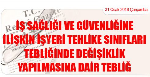 İş Sağlığı ve Güvenliğine İlişkin İşyeri Tehlike Sınıfları Tebliğinde Değişiklik Yapılmasına Dair Tebliğ
