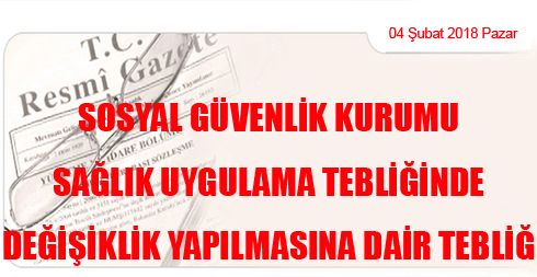 Sosyal Güvenlik Kurumu Sağlık Uygulama Tebliğinde Değişiklik Yapılmasına Dair Tebliğ