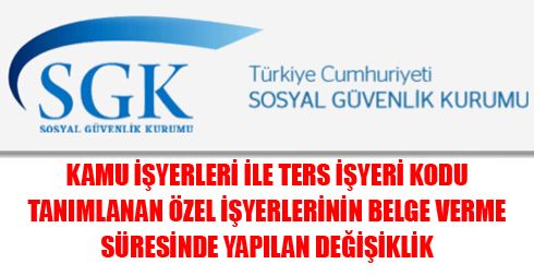 Kamu İşyerleri ile Ters İşyeri Kodu Tanımlanan Özel İşyerlerinin Belge Verme Süresinde Yapılan Değişiklik