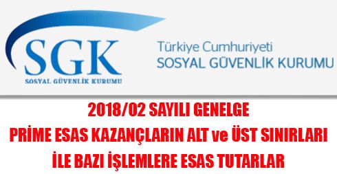 2018/02 Sayılı Genelge – Prime esas kazançların alt ve üst sınırları ile bazı işlemlere esas tutarlar