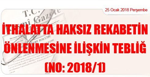 İthalatta Haksız Rekabetin Önlenmesine İlişkin Tebliğ (No: 2018/1)