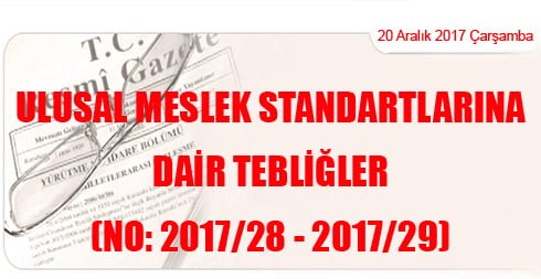 Ulusal Meslek Standartlarına Dair Tebliğ (No: 2017/28 – 2017/29)