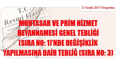 Muhtasar ve Prim Hizmet Beyannamesi Genel Tebliği (Sıra No: 1)’nde Değişiklik Yapılmasına Dair Tebliğ (Sıra No: 3)