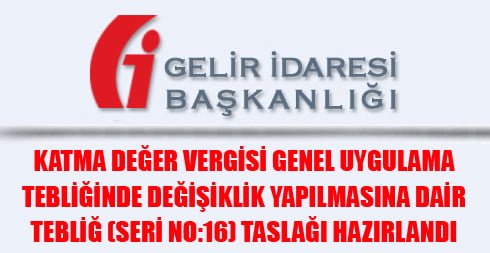 Katma Değer Vergisi Genel Uygulama Tebliğinde Değişiklik Yapılmasına Dair Tebliğ (Seri No:16) Taslağı Hazırlandı