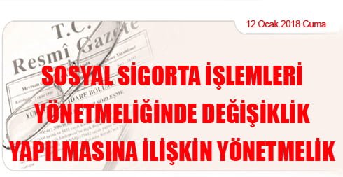 Sosyal Sigorta İşlemleri Yönetmeliğinde Değişiklik Yapılmasına İlişkin Yönetmelik
