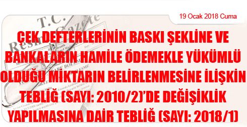 Çek Defterlerinin Baskı Şekline ve Bankaların Hamile Ödemekle Yükümlü Olduğu Miktarın Belirlenmesine İlişkin Tebliğ (Sayı: 2010/2)’de Değişiklik Yapılmasına Dair Tebliğ (Sayı: 2018/1)