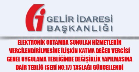 Elektronik Ortamda Sunulan Hizmetlerin Vergilendirilmesine İlişkin Katma Değer Vergisi Genel Uygulama Tebliğinde Değişiklik Yapılmasına Dair Tebliğ (Seri No:17) Taslağı Güncellendi