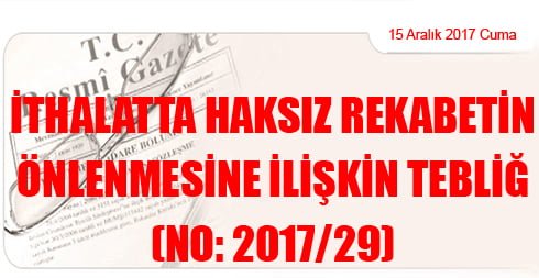 İthalatta Haksız Rekabetin Önlenmesine İlişkin Tebliğ (No: 2017/29)