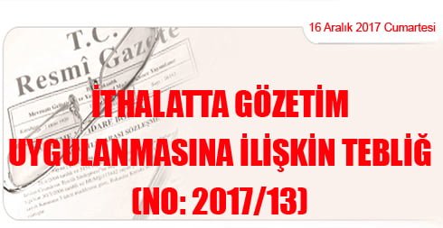 İthalatta Gözetim Uygulanmasına İlişkin Tebliğ (No: 2017/13)