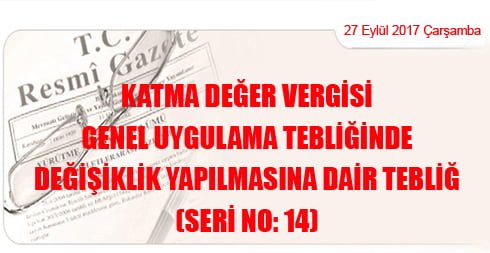 Katma Değer Vergisi Genel Uygulama Tebliğinde Değişiklik Yapılmasına Dair Tebliğ (Seri No: 14)