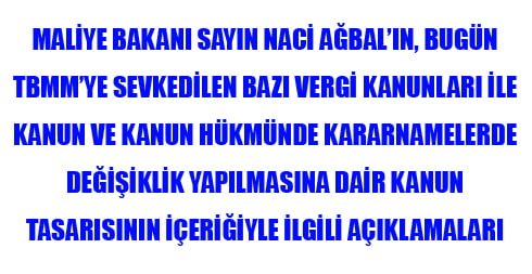 Maliye Bakanı Sayın Naci Ağbal’ın, Bugün Tbmm’ye Sevkedilen Bazı Vergi Kanunları İle Kanun Ve Kanun Hükmünde Kararnamelerde Değişiklik Yapılmasına Dair Kanun Tasarısının İçeriğiyle İlgili Açıklamaları
