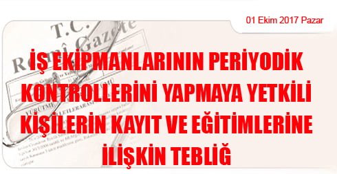 İş Ekipmanlarının Periyodik Kontrollerini Yapmaya Yetkili Kişilerin Kayıt ve Eğitimlerine İlişkin Tebliğ