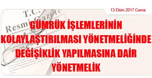 Gümrük İşlemlerinin Kolaylaştırılması Yönetmeliğinde Değişiklik Yapılmasına Dair Yönetmelik