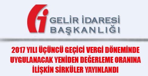 2017 Yılı Üçüncü Geçici Vergi Döneminde Uygulanacak Yeniden Değerleme Oranına İlişkin Sirküler Yayınlandı