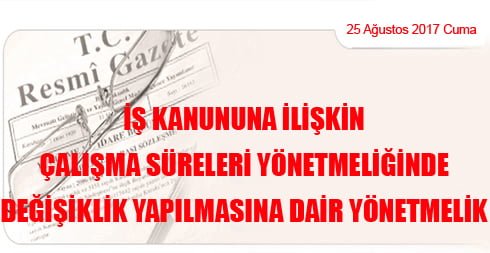 İş Kanununa İlişkin Çalışma Süreleri Yönetmeliğinde Değişiklik Yapılmasına Dair Yönetmelik