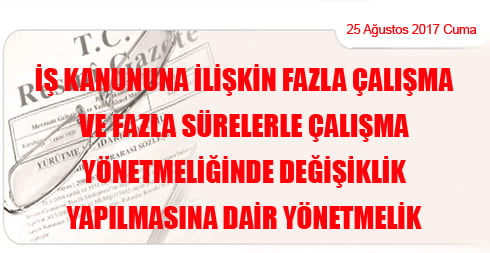 İş Kanununa İlişkin Fazla Çalışma ve Fazla Sürelerle Çalışma Yönetmeliğinde Değişiklik Yapılmasına Dair Yönetmelik