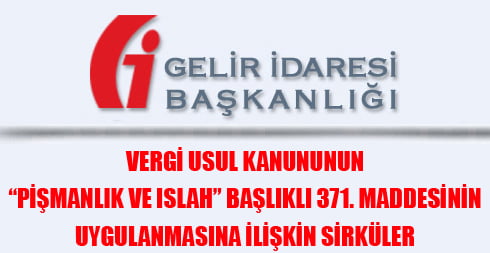 Vergi Usul Kanununun “Pişmanlık ve Islah” Başlıklı 371 inci Maddesinin Uygulanmasına İlişkin Sirküler