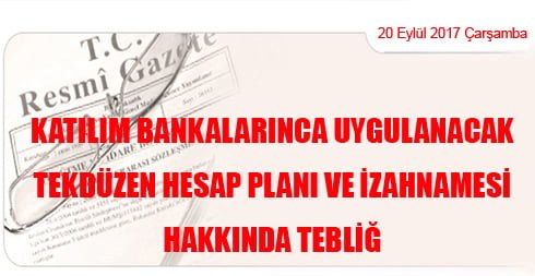 Katılım Bankalarınca Uygulanacak Tekdüzen Hesap Planı ve İzahnamesi Hakkında Tebliğ