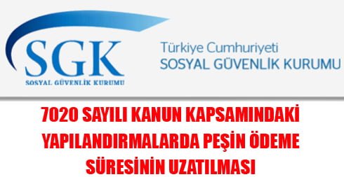 7020 sayılı Kanun Kapsamındaki Yapılandırmalarda Peşin Ödeme Süresinin Uzatılması