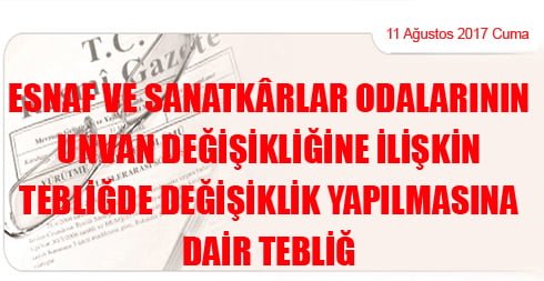Esnaf ve Sanatkârlar Odalarının Unvan Değişikliğine İlişkin Tebliğde Değişiklik Yapılmasına Dair Tebliğ