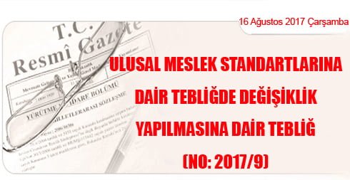 Ulusal Meslek Standartlarına Dair Tebliğde Değişiklik Yapılmasına Dair Tebliğ (No: 2017/9)