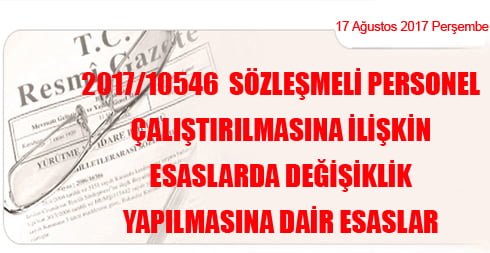 2017/10546 Sözleşmeli Personel Çalıştırılmasına İlişkin Esaslarda Değişiklik Yapılmasına Dair Esaslar