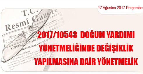 2017/10543 Doğum Yardımı Yönetmeliğinde Değişiklik Yapılmasına Dair Yönetmelik