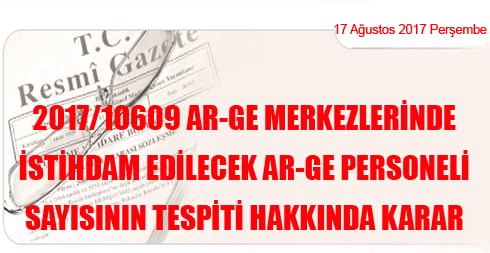 2017/10609 Ar-Ge Merkezlerinde İstihdam Edilecek Ar-Ge Personeli Sayısının Tespiti Hakkında Karar