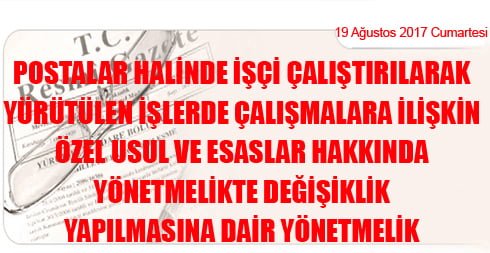 Postalar Halinde İşçi Çalıştırılarak Yürütülen İşlerde Çalışmalara İlişkin Özel Usul ve Esaslar Hakkında Yönetmelikte Değişiklik Yapılmasına Dair Yönetmelik