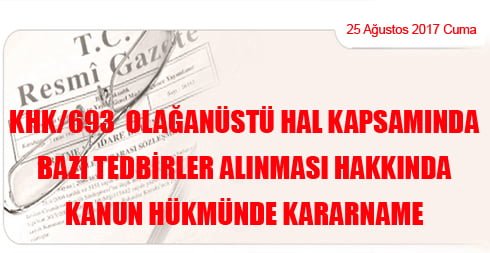 KHK/693 Olağanüstü Hal Kapsamında Bazı Tedbirler Alınması Hakkında Kanun Hükmünde Kararname