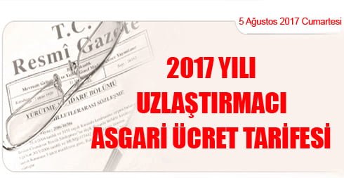 2017 Yılı Uzlaştırmacı Asgari Ücret Tarifesi