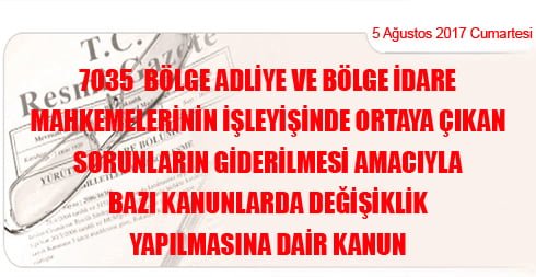 7035 Bölge Adliye ve Bölge İdare Mahkemelerinin İşleyişinde Ortaya Çıkan Sorunların Giderilmesi Amacıyla Bazı Kanunlarda Değişiklik Yapılmasına Dair Kanun