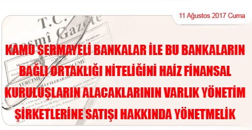 Kamu Sermayeli Bankalar ile Bu Bankaların Bağlı Ortaklığı Niteliğini Haiz Finansal Kuruluşların Alacaklarının Varlık Yönetim Şirketlerine Satışı Hakkında Yönetmelik
