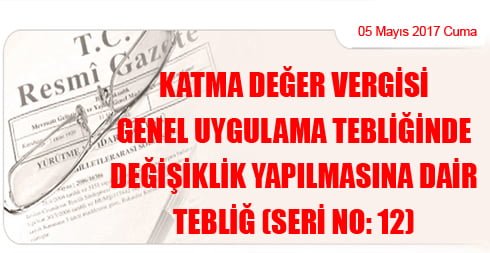 Katma Değer Vergisi Genel Uygulama Tebliğinde Değişiklik Yapılmasına Dair Tebliğ (Seri No: 12)