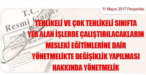 Tehlikeli ve Çok Tehlikeli Sınıfta Yer Alan İşlerde Çalıştırılacakların Mesleki Eğitimlerine Dair Yönetmelikte Değişiklik Yapılması Hakkında Yönetmelik